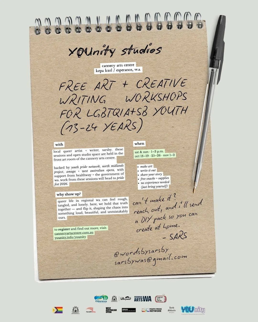 free art + writing workshops for lgbtqia+sb youth (13β24 yrs)