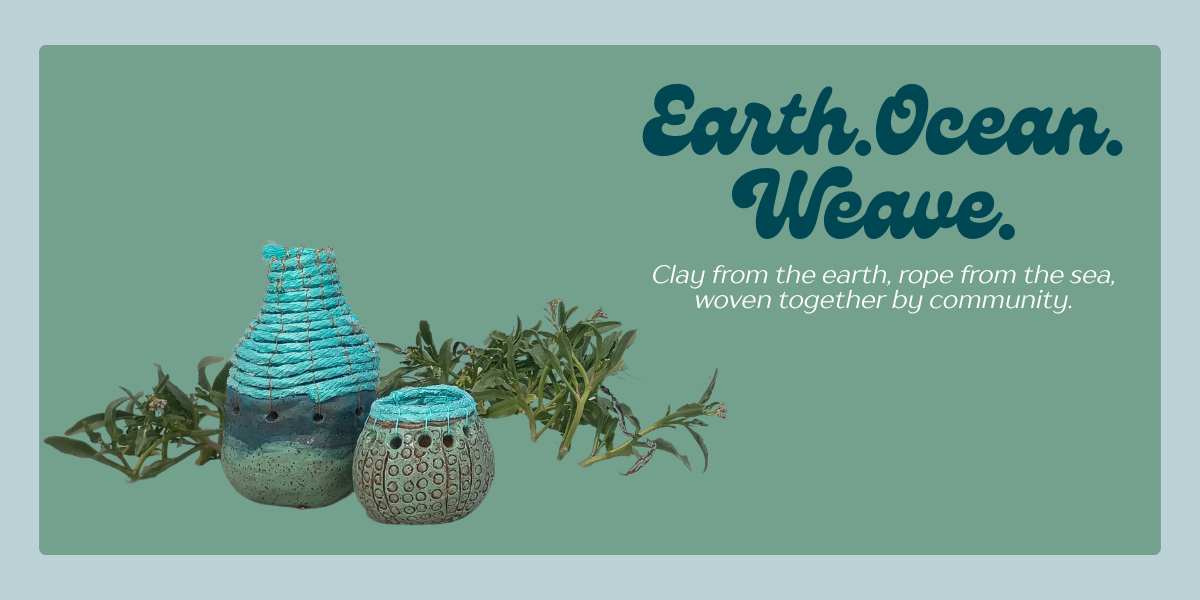At the heart of each work is reclaimed rope and fishing debris collected from the Kepa Kurl / Esperance coastline—particularly 10 Mile Beach—by the 10 Mile Collection. Once harmful waste, these materials have been transformed, woven into ceramic forms to create striking and meaningful vessels under the guidance of local artists Naomi Stanitzki, Jess Le Monnier and Michelle Crisp.