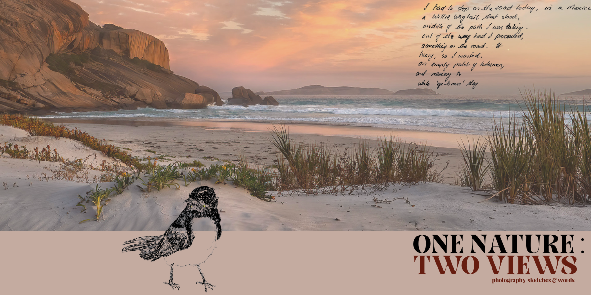 The feathers that drift in the wind; the unfolding melaleuca blossoms; the behaviour of the birds…these are the things I notice on my walks. Handwriting journal entries and sketching allows me to reflect on details and find answers for questions asked by what is seen. It is the epitome of slow journalism; a complete contrast to the rush of news gathering and the quick capture of press photography.